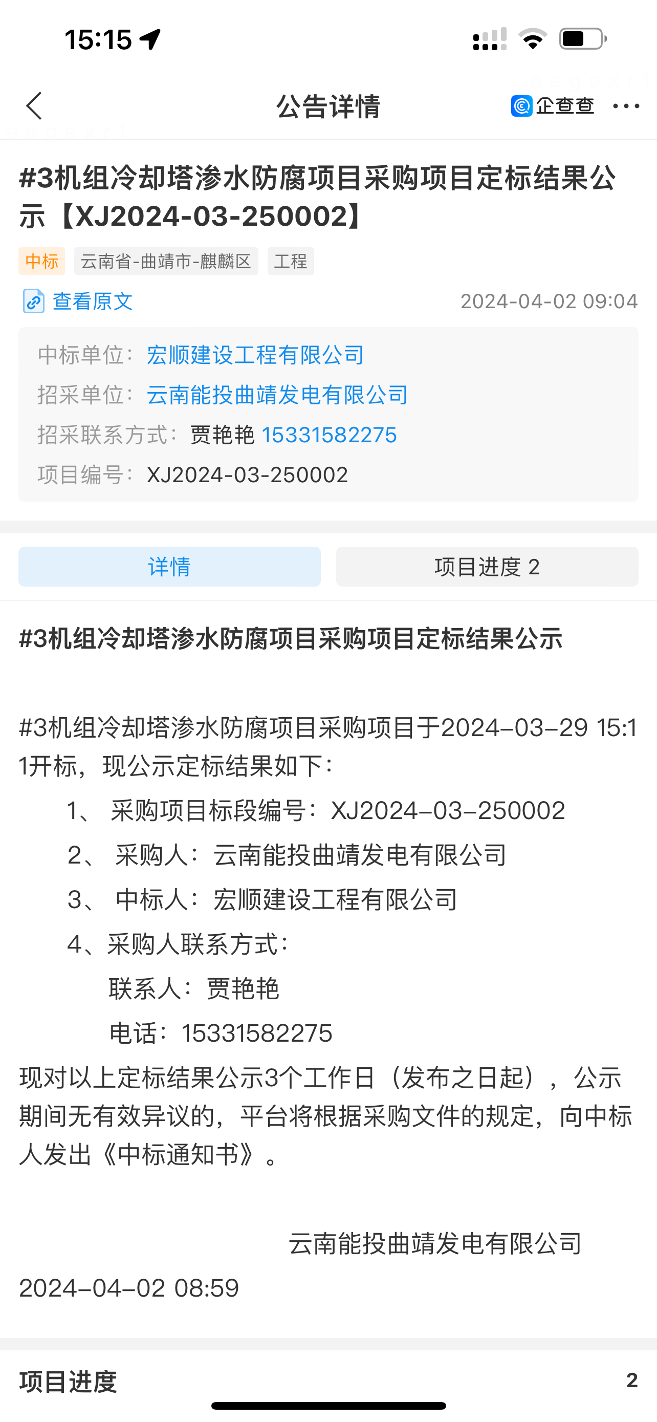 熱烈祝賀我公司中標云南能投曲靖電廠冷卻塔內(nèi)壁防腐項目