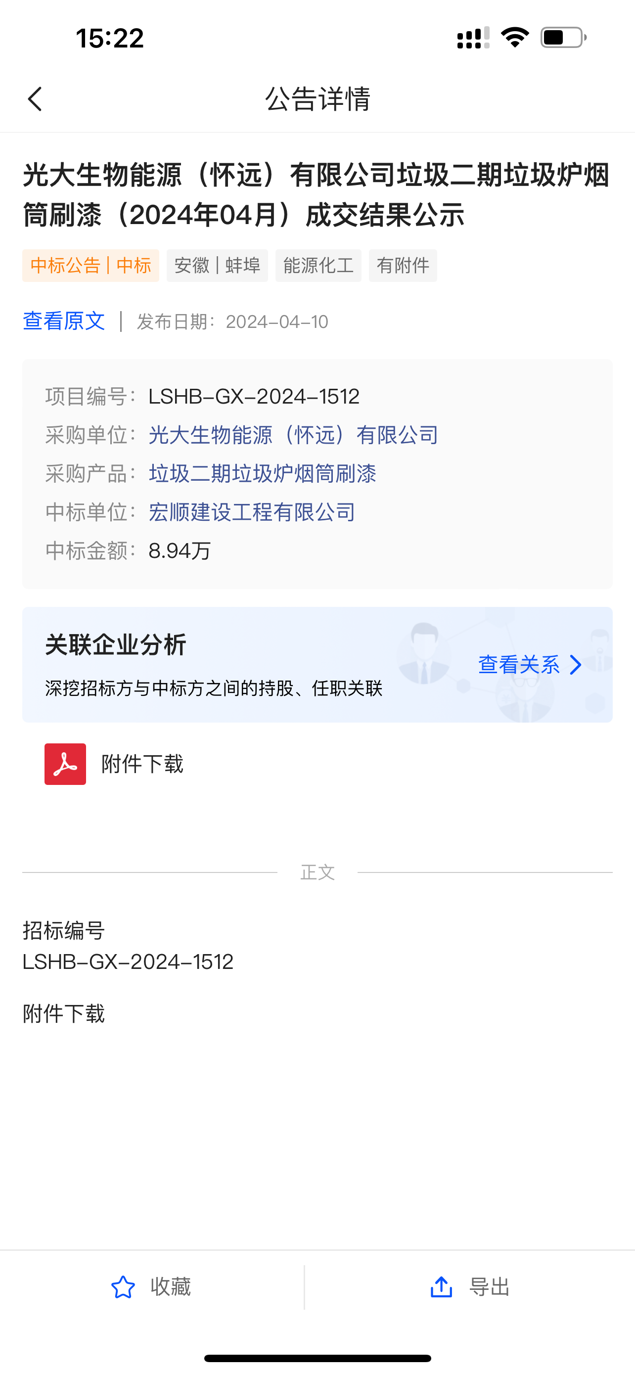 熱烈祝賀我公司中標光大生物能源懷遠公司垃圾電廠煙囪刷漆工程